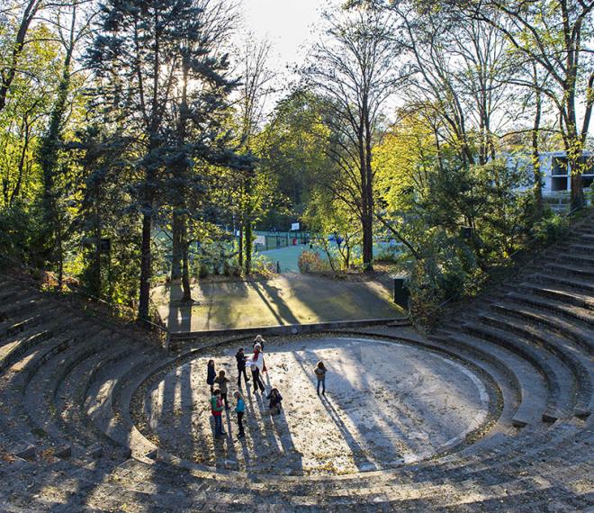 - Renovation of the space behind the Grand bâtiment and creation of eco friendly pathways surrounded by grass to create a welcoming outdoor recreational and study area